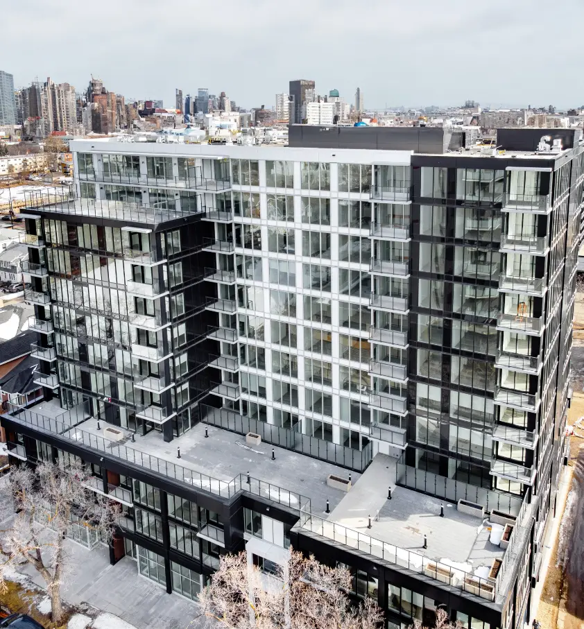 Client: Cidex Group. Architect: Norr Architecture. Location: 122 Street NW and Jasper Avenue NW – Edmonton, AB. Completed: 2024 Type: Residential & Commercial Mixed-Use. Services Provided: Steel Framing, Insulation, Drywall, Taping & Textured Ceilings.