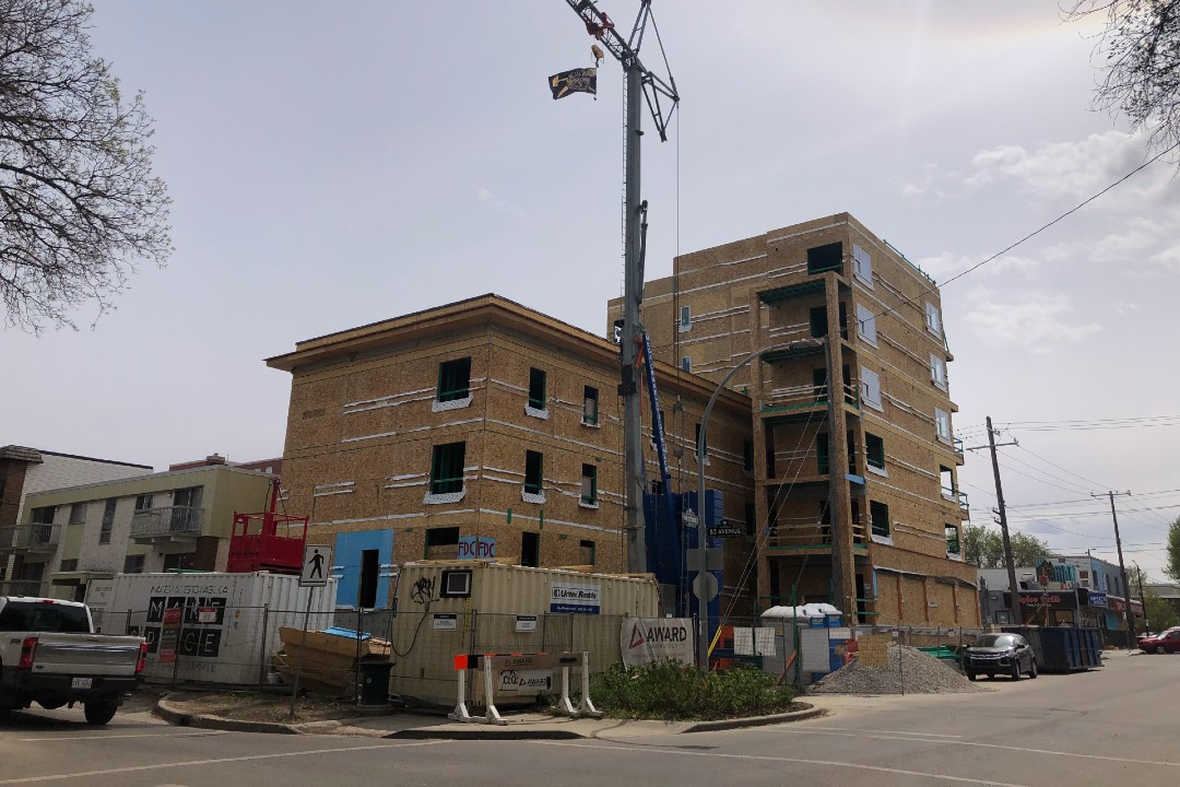Client: Pagnotta Industries. Architect: Dialog. Location: 405 Avenue B South – Saskatoon, SK. Completed: 2015. Type: Residential & Commercial Mixed-Use. Services Provided: Steel Framing, Insulation, Drywall, Taping & Textured Ceilings.